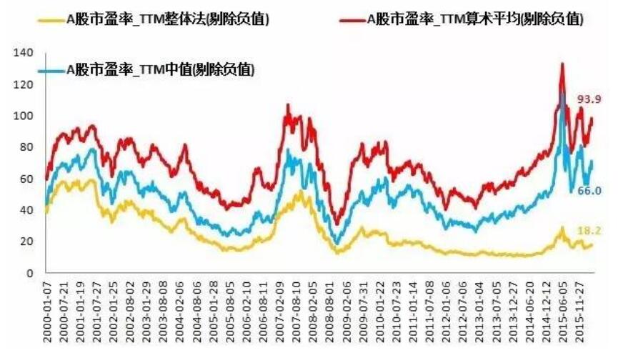 在我們的路演中,發(fā)現(xiàn)目前對市場長期趨勢還持樂觀態(tài)度的人,一般是那些去年“股災(zāi)”以來倉位就一直很低的投資者,他們在躲過了三輪“股災(zāi)”之后,其實(shí)也忍不住想要入場“吃口飯”了。但擺在他們面前的一個現(xiàn)實(shí)問題是——即使經(jīng)歷了三輪“股災(zāi)”,居然還是找不到基本面好估值又便宜的股票,因此無從下手。這些投資者面對的問題用下圖可以很直觀地表現(xiàn)出來——雖然目前A股整體的PE只有18倍,確實(shí)已經(jīng)回落到了比較低的位置,但是如果看算術(shù)平均的PE卻高達(dá)94倍,看PE中值也高達(dá)66倍,都還處在歷史高點(diǎn)上,遠(yuǎn)未到“正常水平”。我們都知道,估值是“快變量”,盈利是“慢變量”,因此進(jìn)入股市的長期資金往往都是賺盈利的錢,而不是賺估值的錢,他們只會在估值中樞比較穩(wěn)定的時候才會進(jìn)場,否則估值的大幅波動會完全抹殺掉盈利擴(kuò)張的收益,現(xiàn)在來看還沒到他們要進(jìn)場的時候。