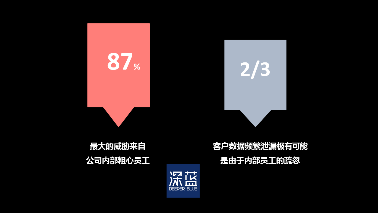 87% 的受訪者認為,最大的威脅來自公司內(nèi)部粗心員工;近三分之二的受訪者認為,客戶數(shù)據(jù)頻繁泄漏極有可能是由于內(nèi)部員工的疏忽。