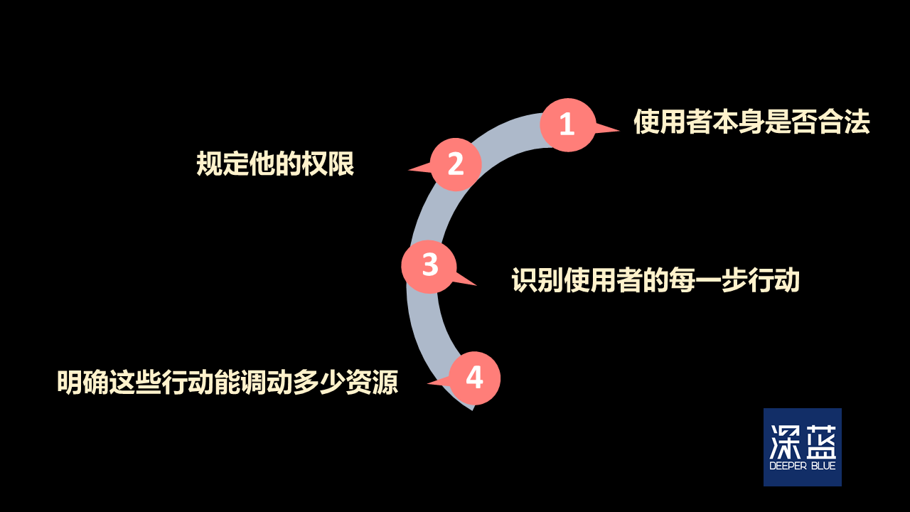 驗證一共需要在四個環(huán)節(jié)中進行:驗證信息使用者是否合法是否可信任;如果是可以被信任的的,那么還需要規(guī)定他的權(quán)限;規(guī)定好權(quán)限后,要驗證他每一步的行動;最后還需要驗證他的行動能夠調(diào)動多少資源。