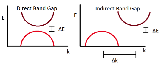 直接帶隙(左)和間接帶隙(右)能帶分布圖。