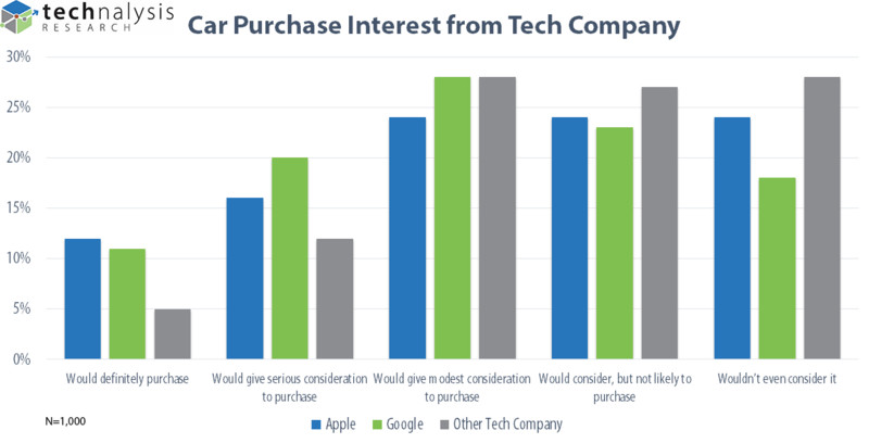 TECHnalysis調(diào)查:約1/3的受訪者表示會認真考慮購買一輛蘋果/Google汽車