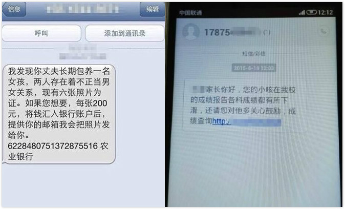 相比黑客,在今年 8 月因為徐玉玉之死而重新被拋入漩渦中心的手機(jī)詐騙才是我們這些普通人最常面對的威脅。手機(jī)詐騙歷史悠久,花樣層出不窮,雖然已經(jīng)從十年前的短信「爸爸我嫖娼被抓速匯錢給警察保我出來,張警官,農(nóng)行賬戶 xxxxxxxxxx」的原始手段,進(jìn)化到了近年的假基站、假官網(wǎng)、煽動性內(nèi)容(「我是你老公的小三,不信你就點開照片看看我們的床照」)配上釣魚鏈接等看似需要技術(shù)的騙術(shù),但實際上都沒什么技術(shù)含量,完全不需要黑客出手,利用的還是被泄露的用戶信息與手機(jī)用戶松懈的防范心理。