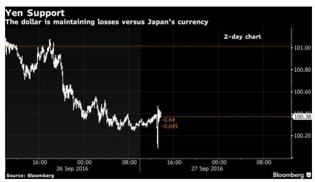 美元/日元一度觸及100.09的日內(nèi)低位。同時(shí),黃金上漲,亞洲政府債券也呈現(xiàn)上漲趨勢(shì)。
