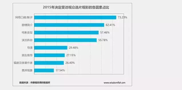 而后隨著影片推向市場(chǎng),通過購(gòu)票網(wǎng)站評(píng)分、觀眾評(píng)論、社交媒體傳播、人際傳播等多方面的交互影響,對(duì)后續(xù)觀眾是否愿意購(gòu)票觀看將起著主要作用(根據(jù)偉德福思數(shù)據(jù)2015年觀眾研究報(bào)告:網(wǎng)絡(luò)口碑和影評(píng)已成為決定觀眾觀影選片的首要因素)。