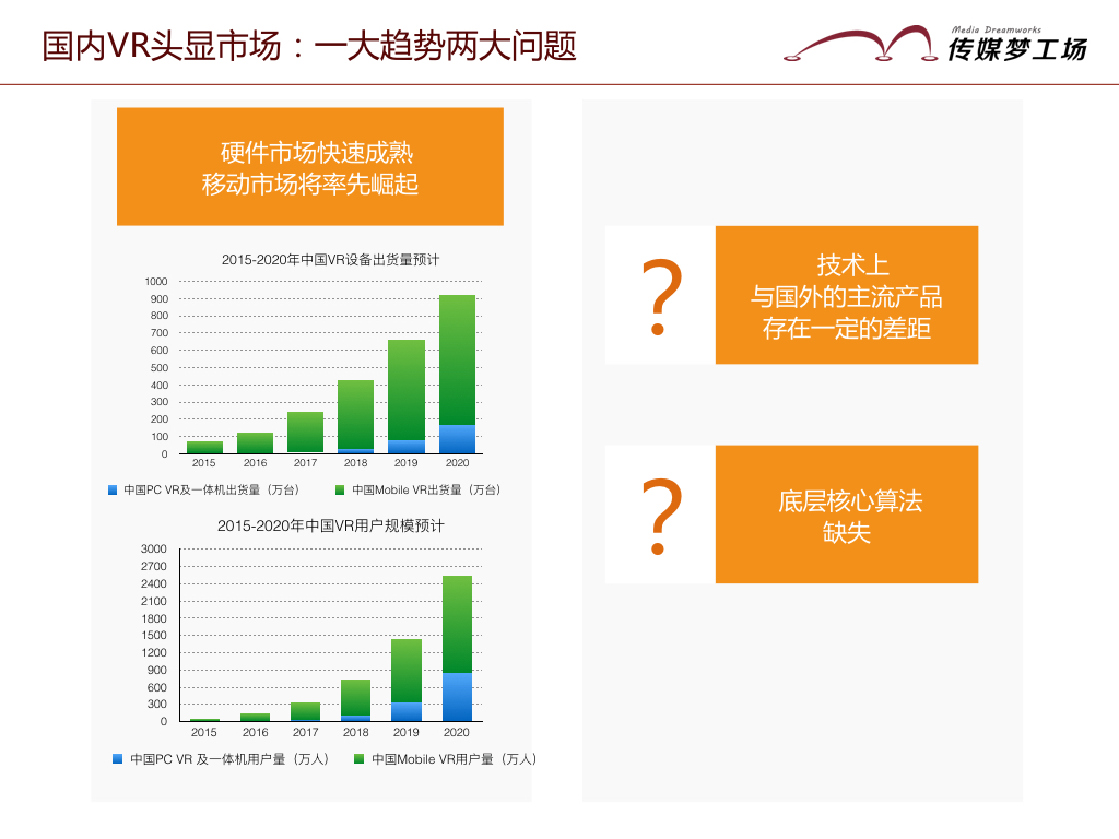 移動(dòng)VR率先崛起:基于智能手機(jī)的發(fā)展軌跡以及龐大的用戶規(guī)模,移動(dòng)VR被很多人認(rèn)為是未來的國(guó)內(nèi)主流VR設(shè)備,當(dāng)然也與VR眼鏡技術(shù)門檻較低、價(jià)格低廉有很大的關(guān)系。