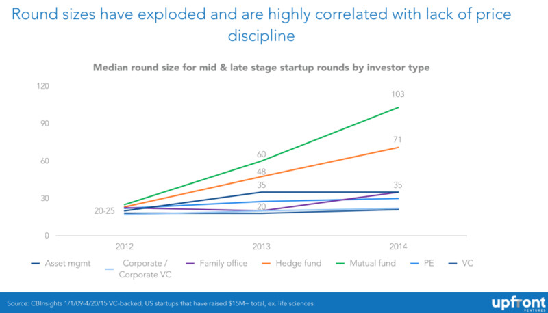 就在短短兩年間,共同基金投資交易周期中的中位數(shù)值已經(jīng)翻了兩倍多,對(duì)沖基金也存在同樣現(xiàn)象。也就是說(shuō),大量資金在科技創(chuàng)業(yè)公司融資末期的生態(tài)系統(tǒng)中翻騰攪動(dòng),這對(duì)于快速增長(zhǎng)的科技型創(chuàng)業(yè)公司真的是個(gè)利好嗎?長(zhǎng)遠(yuǎn)看來(lái),其實(shí)不然。因?yàn)檫@些公司最終都會(huì)付出一定代價(jià)。要么最終一步步走向 IPO,要么被那些幾乎確定他們要上市的大公司收購(gòu)。所以終究還得要回歸理性。